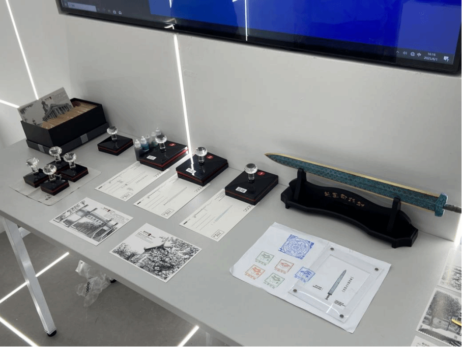 在文创中心展区,实践团精心打造了一场融合古今的科技文化盛宴。他们以传奇文物“越王勾践剑”为文化核心,通过1:1精准复刻的青铜剑和配套设计的原创文创印章,构建了沉浸式的互动体验场景。参观者只需用手机扫描印章图案,便能即刻触发AR全息投影,仿佛瞬间置身于春秋时期的铸剑工坊,亲眼目睹“复合金属工艺”、“热镀锡法”等凝聚古人智慧的科技奇迹。这一新颖独特的展示形式,吸引了涂善东院士、孙丽丽院士等一众专家学者热情参与,并围绕展示内容与实践团成员展开了深入交流,对这种以现代科技活化传统文化、寓教于乐的科普形式给予了高度赞赏。