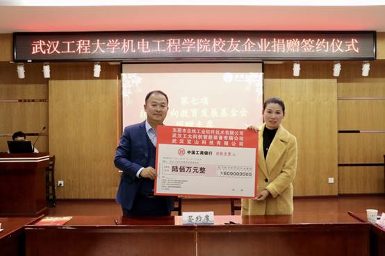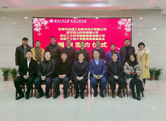 (通讯员 毕灵敏,蔡超)12月25日下午,东莞市总线工业软件技术有限公司、武汉览山科技有限公司和武汉工大科创智能装备有限公司三家校友企业联合向学校捐赠600万元用于“激光智能制造研究所”项目建设,签约仪式在免费看黄色网站205会议室进行。武汉工程大学党委书记程幼金、学校正校级干部、基金会理事长叶芃和三家企业董事长张玮先生、刘朱锋先生、魏丛超先生出席仪式,学校党政办公室、校友工作处、国有资产与设备管理处、科学技术发展院、招标采购处、计划财务处、免费看黄色网站主要负责人及相关人员参加会议,仪式由学校党政办公室主任马小龙主持。