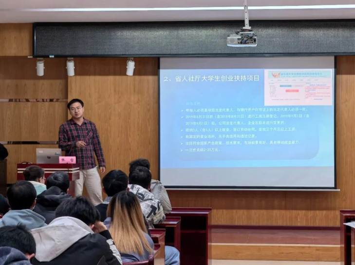 在讲课最后,张老师从创新创业思维、项目步骤、政策支持等方面结束了宣讲。