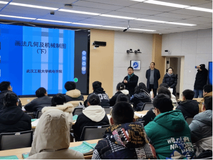 在省级一流课程“画法几何及机械制图”教学的智慧教室中,郑小涛在详细了解智慧教室的使用和学生反馈后,鼓励学生在优良的教学环境和高品质课程资源辅助下,要更加发挥学习的能动性,勤学多练,掌握机械设计的通用语言,打好基本功,取得优异成绩,为专业课学习打下坚实基础。