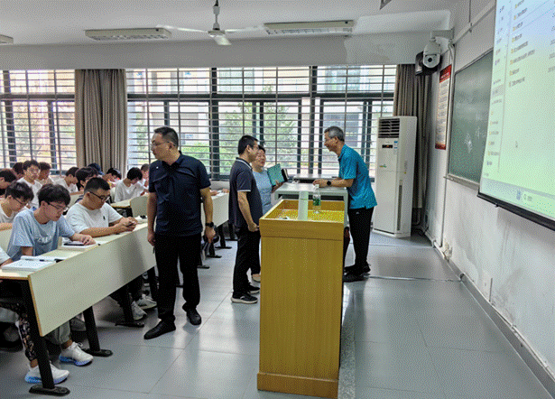巡查组对教师到岗情况、学生出勤率、教学秩序、教学材料的准备、教学设备运行状况等进行了详细检查,与授课教师就教学安排进行交流,并进行了集体听课。