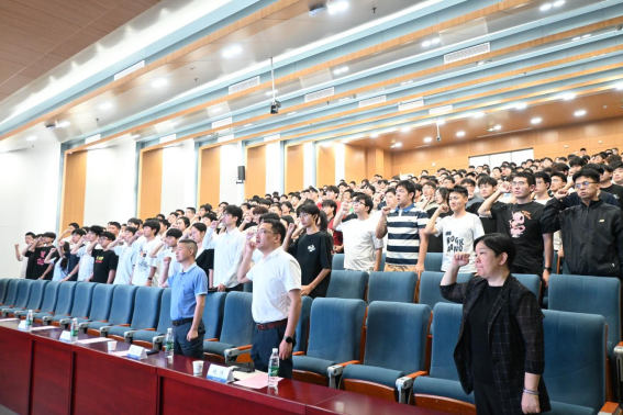 授课中,涂善东院士深情分享了他亲笔题写的《工科毕业生誓言》,并带领全体与会师生庄严宣誓:“公众安全,永在首位;履职专业,精益求精;言行如一,惟诚惟信;进取不懈,矢志创新。”铿锵有力的誓言回荡在现场,表达了工科学子对责任、专业、诚信与创新的坚定承诺。
