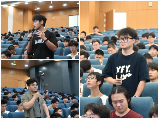 涂善东院士与学生展开互动交流,针对科技前沿、职业规划等问题进行了深入探讨。学生们踊跃提问,涂院士结合自身经历,耐心解答,现场氛围热烈。