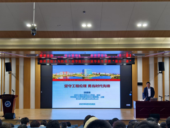 汪伟代表学校党委向涂善东院士坚持为毕业生授课表示诚挚欢迎和衷心感谢并在致辞中指出,涂院士作为我国化工装备安全领域的领军人物,长期以深厚的学术造诣和无私的奉献精神关心支持学校的发展他强调,“最后一课”既是知识的传承,更是精神的接力。人生即将迈入新征程,各位毕业生要在涂院士的授课中汲取智慧、汇聚奋进动力,明大德、立大志,担当科技创新复兴重任。