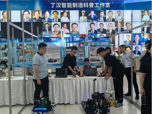 湖北省暨武汉市全国科普月活动中,机电工程学院先进制造与智能机器人研究团队携三款特色机器人亮相湖北省科学技术馆其中,机甲大师步兵机器人配备高清摄像头与激光雷达系统,展示自主路径规划与多机协同作战能力;工程机器人通过液压驱动机械爪与升降平台,演示场地搭建与物资转运的赛事工程作业;体感格斗机器人则通过动作传感器实现人体肢体动作实时同步,吸引300余名青少年排队体验。活动现场设置技术解说展板,团队成员将机械结构、控制算法等专业知识转化为“听得懂、感兴趣”的科普内容,高校教授团队就传动系统精度等技术细节与研发成员深入交流,实现“高端科技”与“大众科普”的双向赋能。