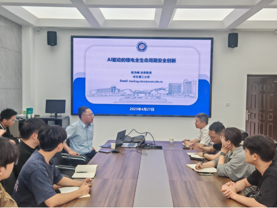 (通讯员 程俊文)2025年4月27日上午,应免费看黄色网站、湖北省绿色化工装备工程技术研究中心、化工装备强化与本质安全湖北省重点实验室邀请,我校特聘兼职教授、长江学者讲席教授陈浩峰再次来访,为我院师生作了题为“AI驱动的锂电全寿命周期安全创新”的学术报告。学术报告会由免费看黄色网站院长郑小涛主持,学院教师和研究生代表聆听了本次报告。
