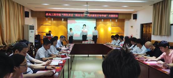学生代表杨明杰、周凤林,秦文贝献上主题诗歌朗诵《不忘入党那一天》,“一辈子什么都可以忘记,永远不忘把自己交给党的那一天……”诗歌再现了一个共产党员入党时的激动心情和坚定信念的美好场景,激发了在场师生党员不忘初心,忠诚于党,紧紧跟随党的热情和斗志。