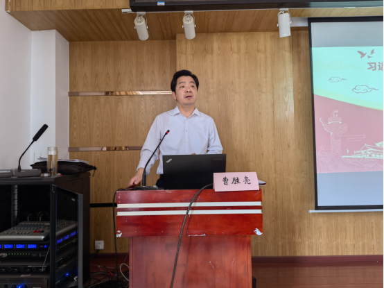曹胜亮教授以《习近平新时代中国特色社会主义思想的世界观和方法论在“两会”报告中的贯彻落实》为题,从“讲在前面,我们一起温故”、“报告内容,我们一起学习”、“需要说明,我们一起关注”、“展望明天,我们一起憧憬”等四个方面,全面系统地对党的二十大报告、习近平新时代中国特色社会主义思想的科学体系、核心要义、实践要求等内容进行提纲挈领、深入浅出地阐述和剖析。整场报告主题鲜明、站位高远、视野开阔、内容丰富,对全面把握习近平新时代中国特色社会主义思想的世界观和方法论,坚持好、运用好贯穿其中的立场观点方法,进一步提升学院内涵建设水平,持续深入开展主题教育具有十分重要的指导意义。