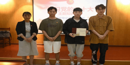 在“学习二十大精神”主题知识竞赛中,支部积极分子王神舟荣获一等奖,党员徐康华和积极分子王佳辉荣获二等奖,党员段远飞和积极分子马陈磊、杨柠豪以及张雷义同学荣获三等奖,党员柒龙祥、康继隆、发展对象李子昂、积极分子王瀚毅等荣获积极参与奖。