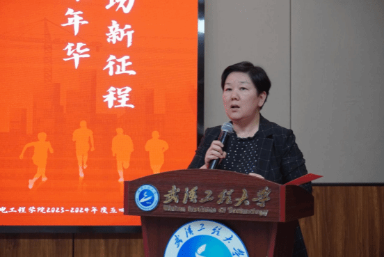 在嘹亮的团歌中,表彰大会正式开幕。学院党委书记郑玲莉代表学院党委向全院青年师生致以节日的问候,向受表彰的先进集体和先进个人表示热烈的祝贺,向支持学院团学工作的领导、老师表示衷心的感谢。她肯定了学院团委在围绕学校、学院高质量发展取得的成绩,并向学院广大青年提出了三点希望:一是坚守时代主题,勇担历史使命;二是弘扬五四精神,争当时代先锋;三是激发青春激情,共筑青春梦想。郑玲莉激励机电青年,要以更加饱满的热情和更加坚定的步伐,勇攀高峰、追求卓越,让“小齿轮”迸发大动能,以青春的名义,向学校高质量发展献礼。