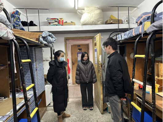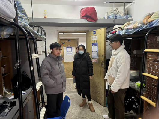 学院党委副书记谢姗姗以及各年级辅导员学生宿舍的卫生状况、安全隐患进行了细致入微的检查。检查内容涵盖电器使用是否合规、消防通道是否畅通、个人物品是否妥善存放等多个方面。对于发现的问题,检查小组现场给予指导,并要求相关宿舍进行整改,确保所有安全隐患得到及时消除。同时,还提醒学生离校时切断水电、关好门窗,妥善保管贵重物品。