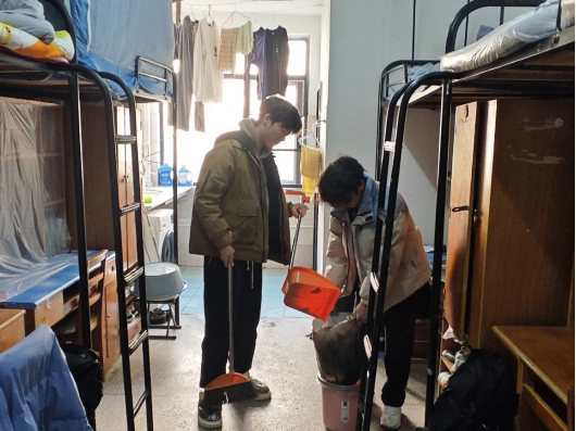 各宿舍成员积极响应号召,利用离校前的时间对宿舍内外进行了彻底清洁,包括床铺整理、地面清扫、桌面物品归位、窗户擦拭以及公共区域的卫生维护等,力求做到无死角、无遗漏。同学们在劳动中不仅增进了彼此间的友谊,也体会到了团队协作的力量。