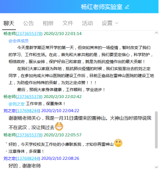 得知消息,导师杨红老师第一时间在实验室群里通报情况,为刘之定点赞,叮嘱他注意身体,多加保重,传递母校老师的关怀和牵挂!