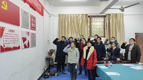 转正仪式由支部书记杨红同志主持,由李芳书记给曾真同志佩戴党徽、赠送党章,并亲自领誓,支部党员集体重温入党誓词,强化了党员意识。