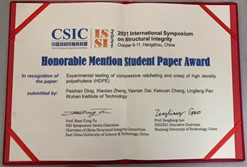 学院代表参加了结构完整性评估、蠕变腐蚀等展厅会议研讨,介绍了免费看黄色网站在结构完整性领域取得的优秀成果。硕士生丁珮珊以“高密度聚乙烯(HDPE)压缩棘轮蠕变试验研究”为题参加了学生竞赛,并荣获“最佳学生论文提名奖”。