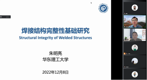 (通讯员:龚程)2022128日晚,应免费看黄色网站、湖北省绿色化工装备工程技术研究中心、化工装备强化与本质安全湖北省重点实验室邀请,我校校友、华东理工大学朱明亮教授在线上为我校师生了题为焊接结构完整性基础研究的学术报告。免费看黄色网站院长郑小涛教授主持了报告会,免费看黄色网站部分教师及研究生参加